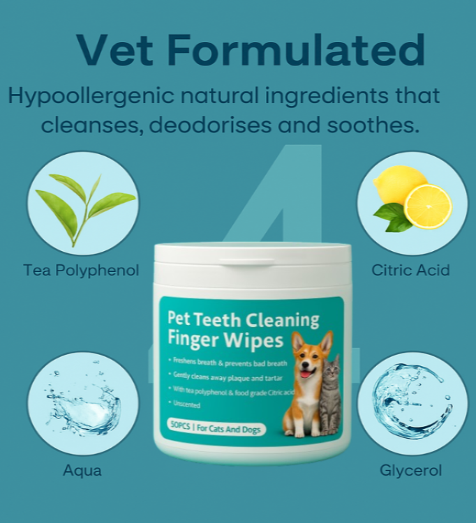 Say goodbye to bad breath and plaque with our gentle finger wipes for dogs and cats. Vet-approved, mess-free, and perfect for everyday use — because your pet deserves more than just cuddles.